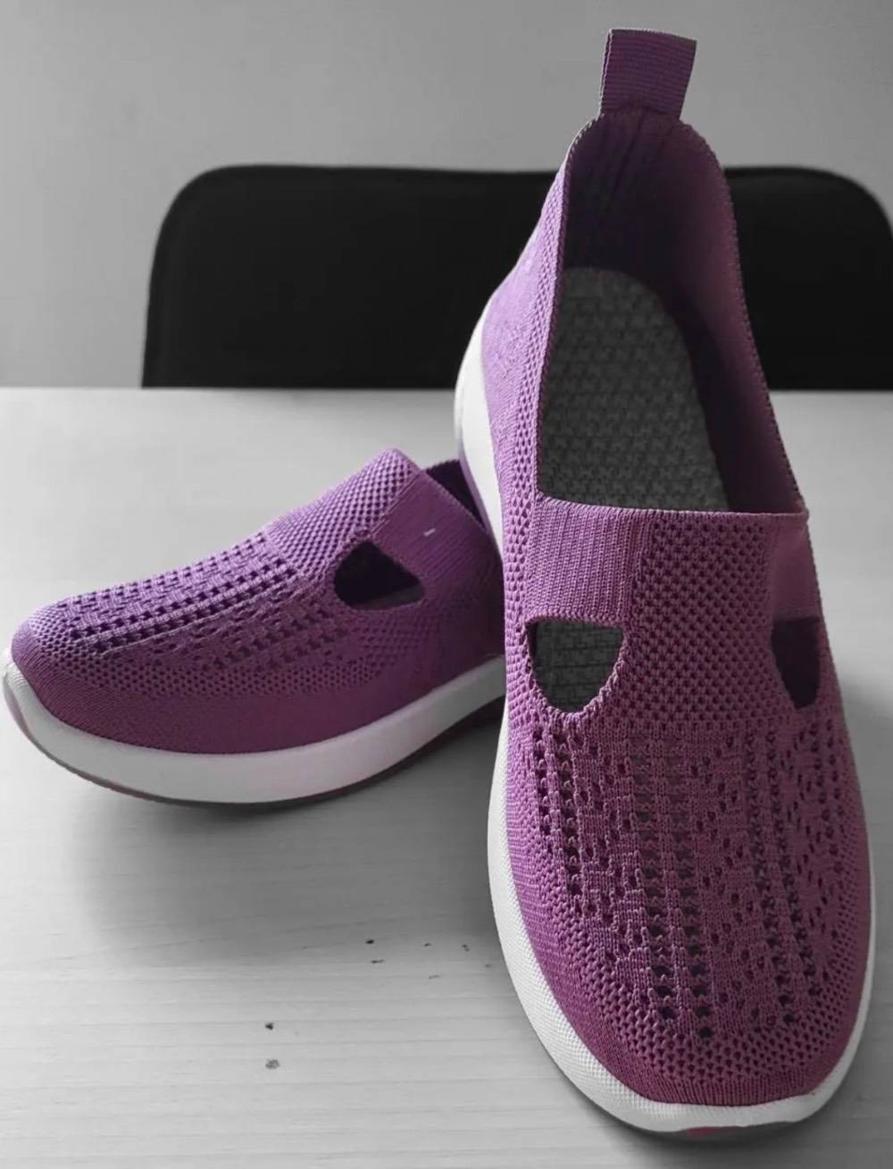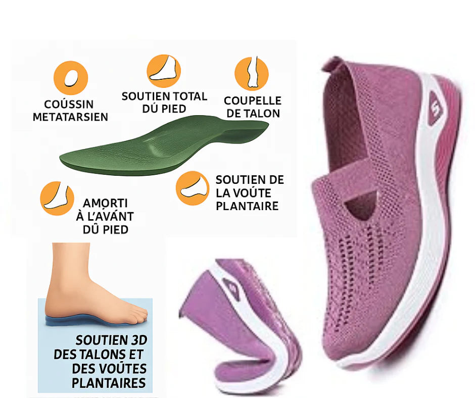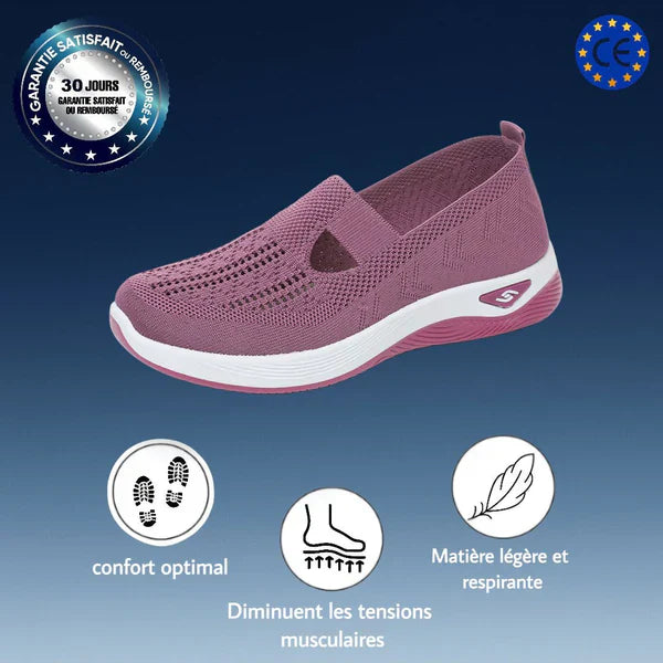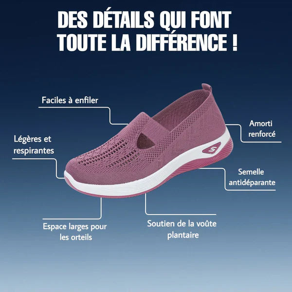 Découvrez le plaisir de marcher sans douleur. Ces sneakers respirantes en maille douce laissent l’air circuler naturellement, gardant vos pieds au frais toute la journée. Leur semelle souple et amortissante réduit la fatigue et soutient chaque pas en douceur. La bande élastique maintient le pied sans serrer, pour un confort total du matin au soir.